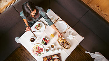 Was in unserem Genusshotel im Ahrntal auf dem Teller landet, sind echte Naturschätze. Aus dem Wald direkt in den Topf. Vom Garten in die Schüssel. Vom Nachbarhof ins MOLIN. Je näher an der Küchentür, desto besser. Unsere traditionellen Stuben empfangen Sie morgens zum ausgedehnten Frühstück, nachmittags zum leichten Wellnessbuffet und abends zum 5-Gang-Wahlmenü, Galadinner oder Themengenuss.