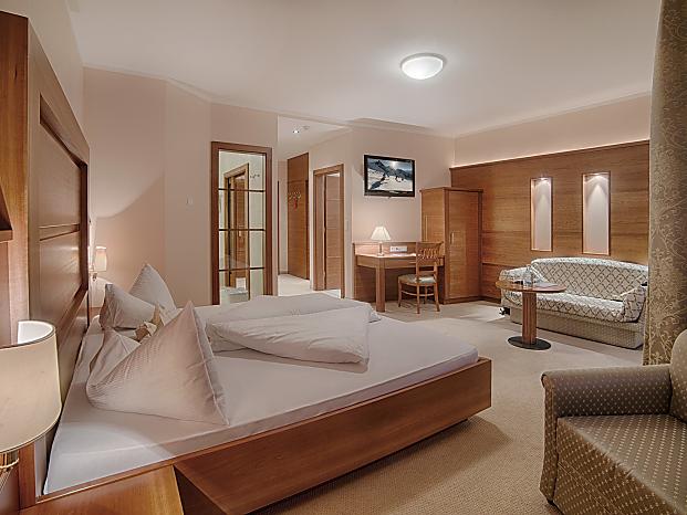 Juniorsuite für 2 bis 5 Personen mit Südterrasse, eigener Garten Loggia und direktem Zugang zum neuen Outdoor Infinity…