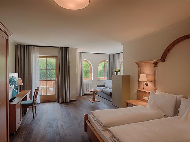 Le Junior suite da 2 a 5 persone con terrazza esposta a sud ed un giardino loggia privato con accesso al nuovo outdoor…
